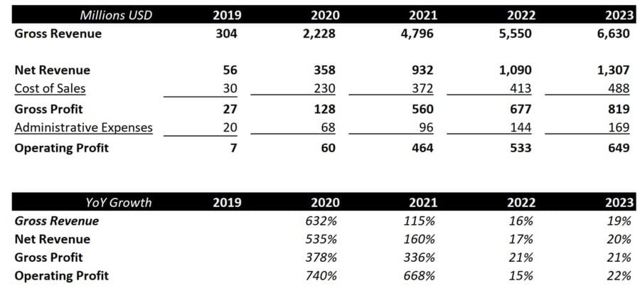 OnlyFans exploded throughout the early months of the COVID pandemic as each creators and followers flocked to the platform. As we see from the monetary assertion beneath, in 2019, the location earned $304 million. By 2023, that quantity had ballooned to $6.6 billion.